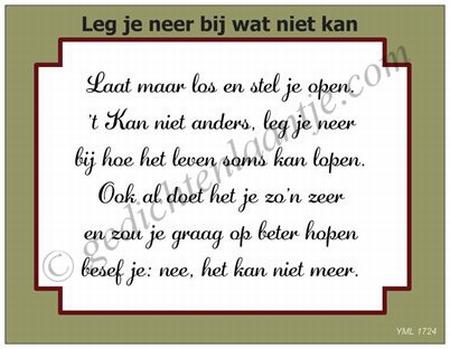 Gedichtkaart, YML 1724: Leg je neer bij wat niet kan aantal