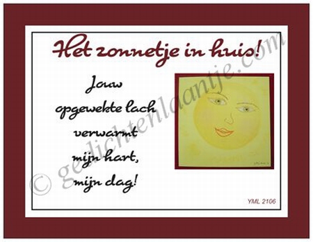 Gedichtkaart YML 2106: Het zonnetje in huis!
